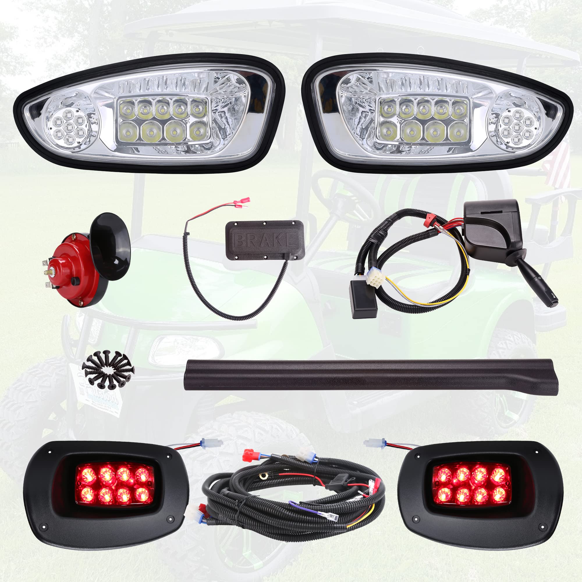 Amazon Com 10l0l Golf Cart Deluxe Led Headlights And Tail Light Kit For Ezgo Rxv 2008 2015 With Turn Signals Hazard Brake Lights Horn Everything Else